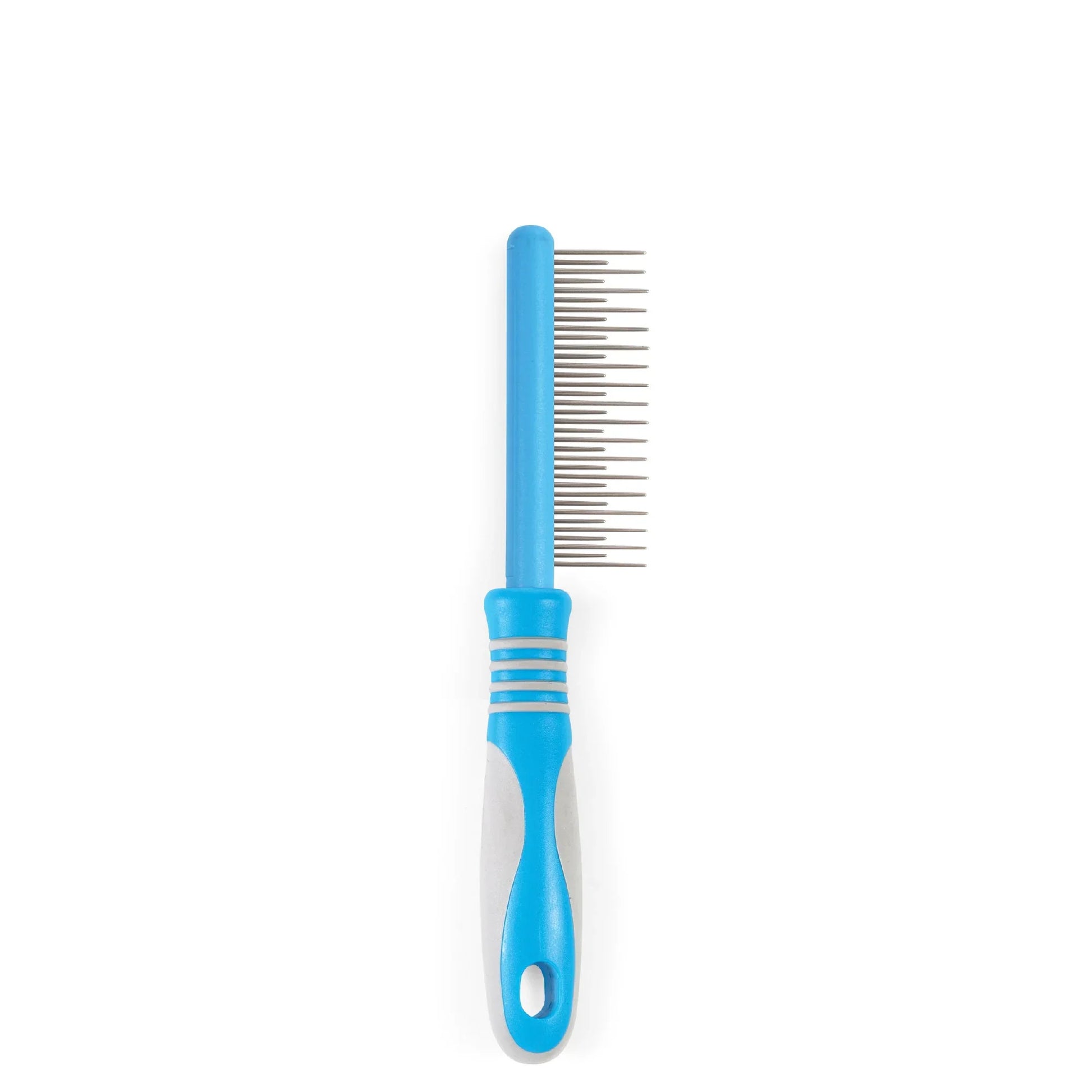 To ensure effective grooming, gently comb the hair in the direction of the fur growth. The comb's pins are rounded and polished for maximum comfort, and the two different lengths of the comb allow for deep penetration into the coat, effectively removing loose hairs. It's important to avoid pushing the comb into the dog's skin, as this may cause discomfort. Instead, gently tease out tangles using the comb. If you encounter matted fur, refrain from pulling or tugging on it, as it may require cutting. If your dog becomes agitated during the grooming session, it's advisable to pause or end the session.