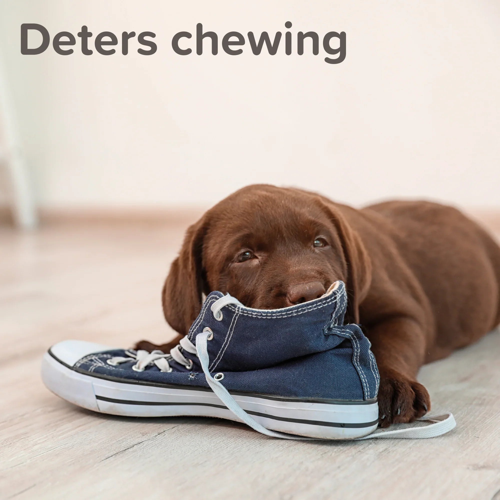 When your pet comes into contact with the treated area, they will find the smell and taste unpleasant, deterring them from returning. It is important to continue to use verbal commands to reprimand the unwanted chewing or scratching until the bad habit is broken.