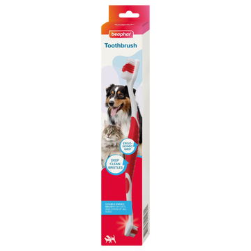 Beaphar Toothbrush Regular is a dual-ended oral hygiene tool designed for both dogs and cats. The ergonomic, non-slip handle and soft, flexible bristles make it suitable for all breeds and sizes, ensuring a comfortable and effective clean.