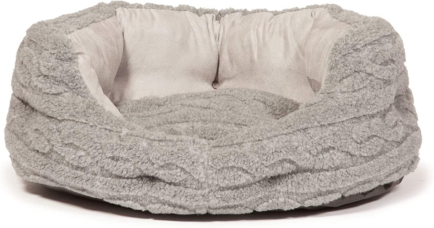 The Bobble Range offers a sumptuous and stylish cable knit design, perfect for creating a cosy and snug environment for your pet. This range features a combination of soft pewter sherpa fleece and faux suede fabrics, ensuring both comfort and style.
