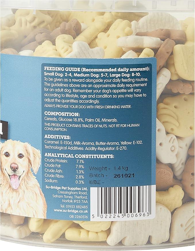 Packaged in a convenient 3-litre resealable tub, containing approximately 420 biscuits, these treats are easy to store and keep fresh. Whether you have a playful puppy or a mature dog, this biscuit medley is sure to become a household favourite.