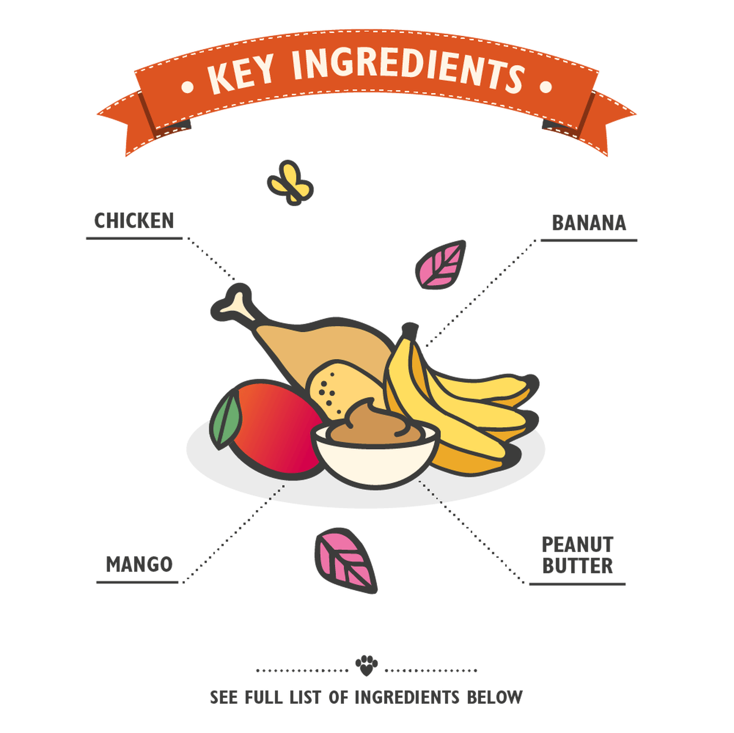 Our Chew Sticks are crafted with fresh chicken, peanut butter, banana, and mango – a combination of fruity and meaty goodness that's perfect for dogs who appreciate the finer things in life. Treat your furry friend to a tasty and entertaining snack they'll love.