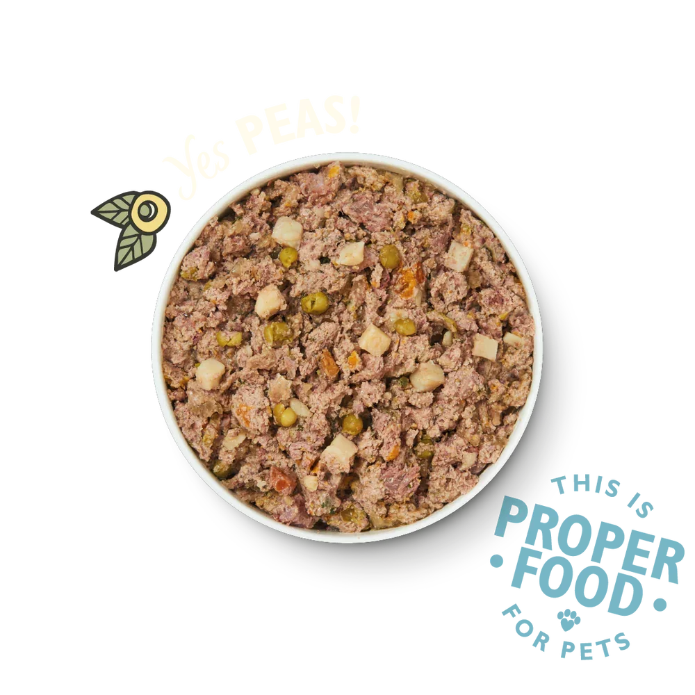 Only real meat: no rendered animal parts, carcass or derivatives, nothing Genetically Modified, no artificial preservatives, colours or sweeteners. No wheat, corn or soya. We use only wholesome meats, herbs - flowers and leaves, fruit and vegetables - to produce a delicious, nutritious, digestible food for dogs. Suitable for Puppies 4 months+.