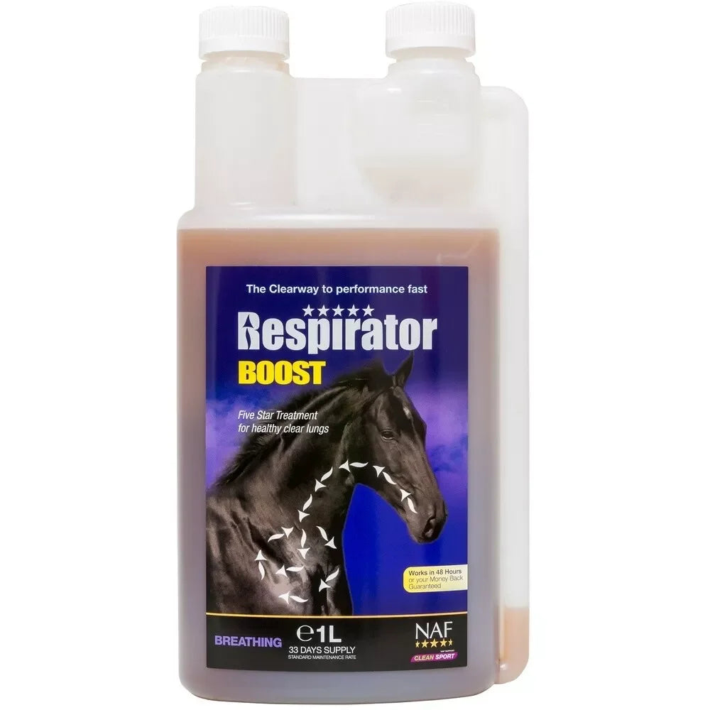 NAF Respirator Boost Equine Supplements are formulated to support respiratory health in horses. These supplements typically contain a blend of natural ingredients such as antioxidants, herbs, and nutrients aimed at maintaining clear airways, supporting lung function, and aiding respiratory comfort.