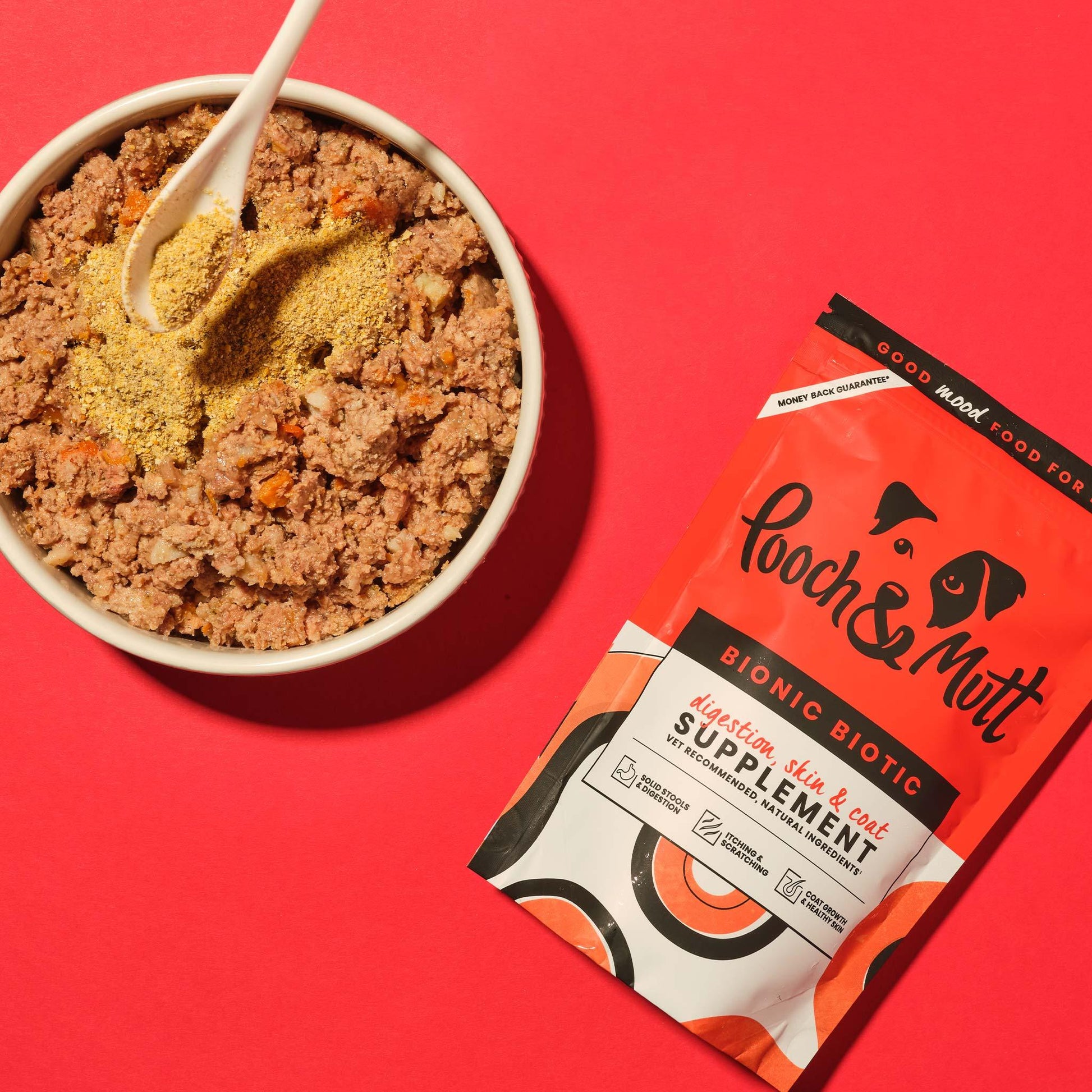 The popularity of our 'Bionic Biotic' probiotic powder for dogs is well-deserved, thanks to its powerful blend of beneficial ingredients. This natural dog supplement is carefully formulated to complement all diets and promote solid stools and healthy digestion.