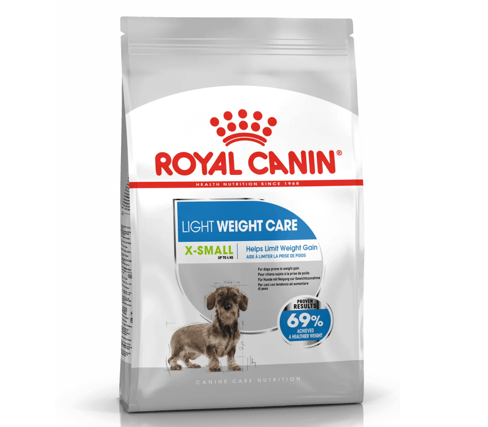 In an internal study by ROYAL CANIN®, 69% of slightly overweight dogs achieved a healthier weight after being fed with X-Small Light Weight Care for 8 weeks*. This product is available in both wet and dry forms, allowing you to cater to your dog's appetite preferences. However, if you feed your dog a mix of wet and dry food, be sure to refer to the on-pack feeding guides to ensure that your dog receives the appropriate amount of each for a complete and balanced diet.