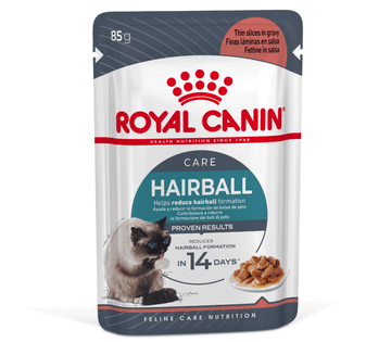 Hairballs can be a discomforting issue for cats, especially if the hair remains in their stomach without passing through the digestive tract. While most of the hair can be easily expelled, excessive hair can lead to the formation of hairballs. ROYAL CANIN® Hairball Care in Gravy is specially formulated to help your cat eliminate ingested hair by stimulating the intestinal transit passage, preventing excess hair from lingering in the stomach.