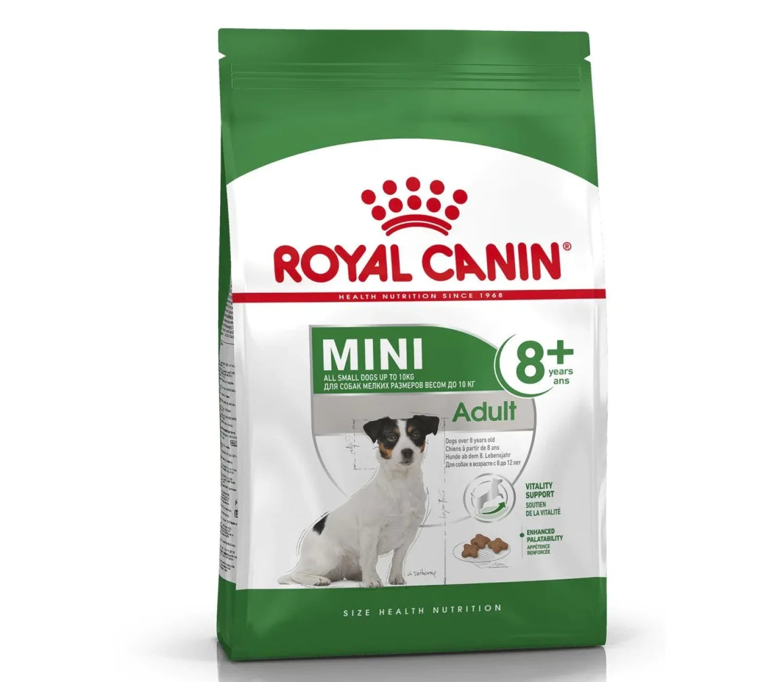 As your dog enters its adult years, it's crucial to ensure their diet continues to provide the nutrition needed to support its overall health, especially as they begin to experience the initial signs of ageing. ROYAL CANIN® Mini Adult 8+ is specially designed for small dogs over 8 years old, weighing up to 10kg. This formula is thoughtfully crafted to meet the unique nutritional requirements of small-breed adult dogs.