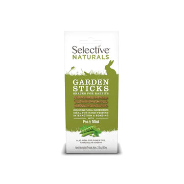 Selective Naturals Garden Sticks are wholesome, baked loop-shaped treats made from Timothy hay, peas, and mint. These high-fibre snacks are perfect for rabbits, guinea pigs, chinchillas, and degus, offering a delicious and healthy option for rewarding or bonding.