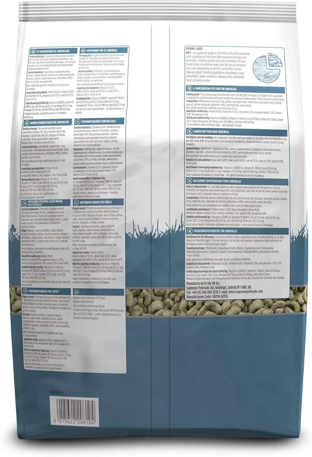 Science Selective Chinchilla Food Is A Nutritionally Complete Pellet Diet Specifically Designed For Chinchillas. It Features High-Fibre Formulation (Around 19 %) To Support Healthy Digestion And Dental Wear. The Recipe Contains Natural Ingredients Such As Dried Parsley, Plantain, And Linseed To Enhance Coat Quality Without Added Sugars .