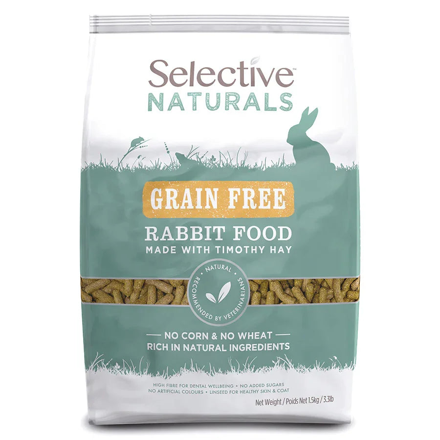 Supreme Selective Naturals Grain Free Rabbit Food 1.5 kg Is A Premium, Grain-Free Extruded Pellet Food Crafted For Adult Rabbits. It Features Timothy Hay As The Primary Ingredient To Mimic A Rabbit’s Natural Diet And Support Digestive And Dental Health. It Also Includes Flaked Peas, Soya Beam Hulls, Linseed And Garden Vegetables To Provide Essential Vitamins, Minerals, Omega Oils, And Prebiotics For Skin, Coat, Gut Wellbeing And Overall Vitality.