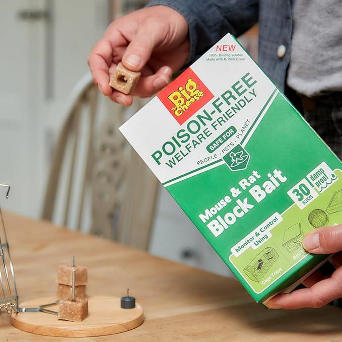 The Big Cheese Poison-Free Mouse & Rat Block Bait offers a safe and effective way to monitor rodent activity in and around your home. Each pack contains 30 moisture-resistant 10g blocks made from high-quality British grain and natural food-grade ingredients, making them highly attractive to mice and rats. Suitable for use in tamper-resistant bait stations, these blocks work both indoors and outdoors, maintaining their effectiveness even in damp conditions.