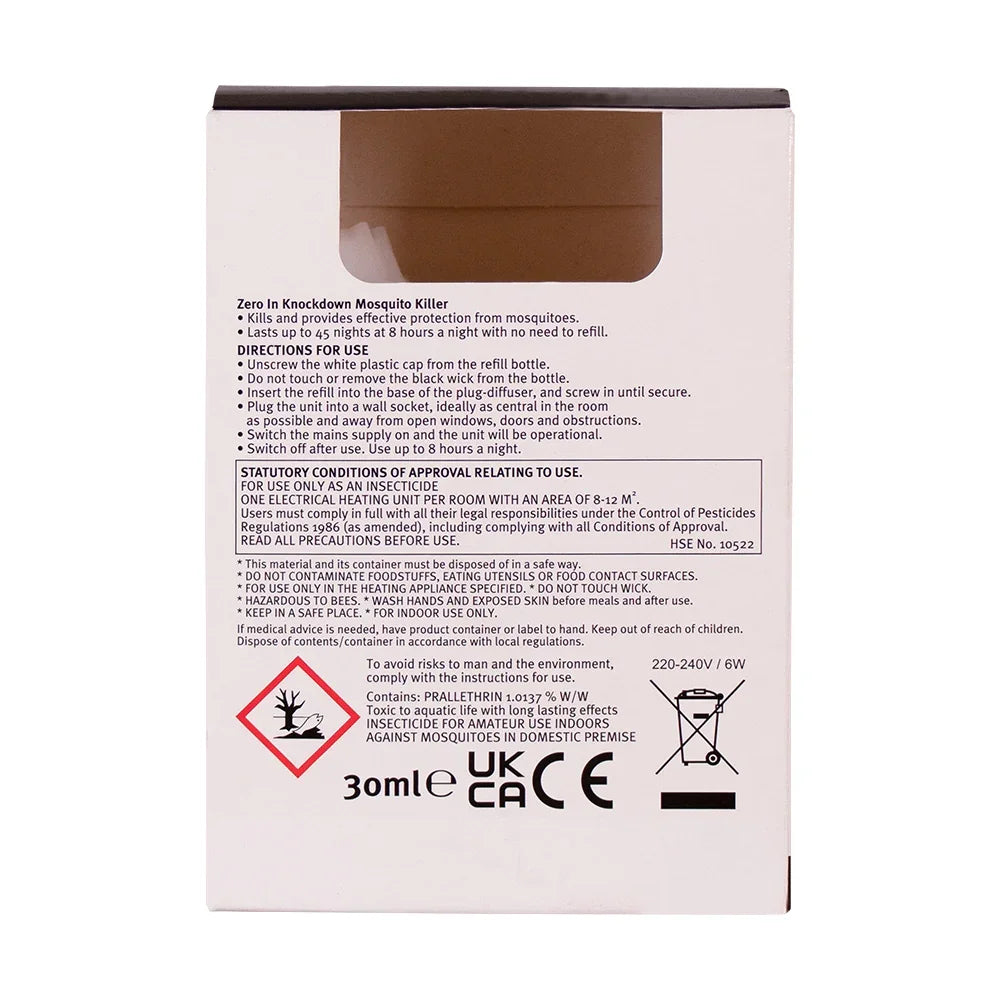 Introducing the Zero In Knockdown Plug-In Mosquito Killer, your ally against mosquitoes for up to 45 nights. This compact device uses advanced technology to attract and eliminate mosquitoes effectively, offering peace of mind indoors. Simply plug it in and let its silent operation and long-lasting protection create a comfortable environment free from flying pests.